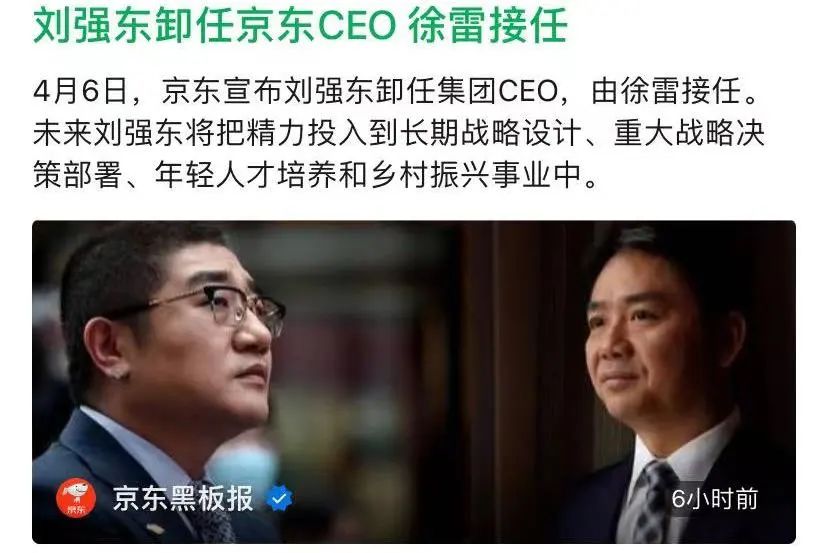 根据今早京东官方公众号的信息:京东集团宣布刘强东卸任京东集团CEO,徐雷出任京东集团CEO,将负责日常运营管理。