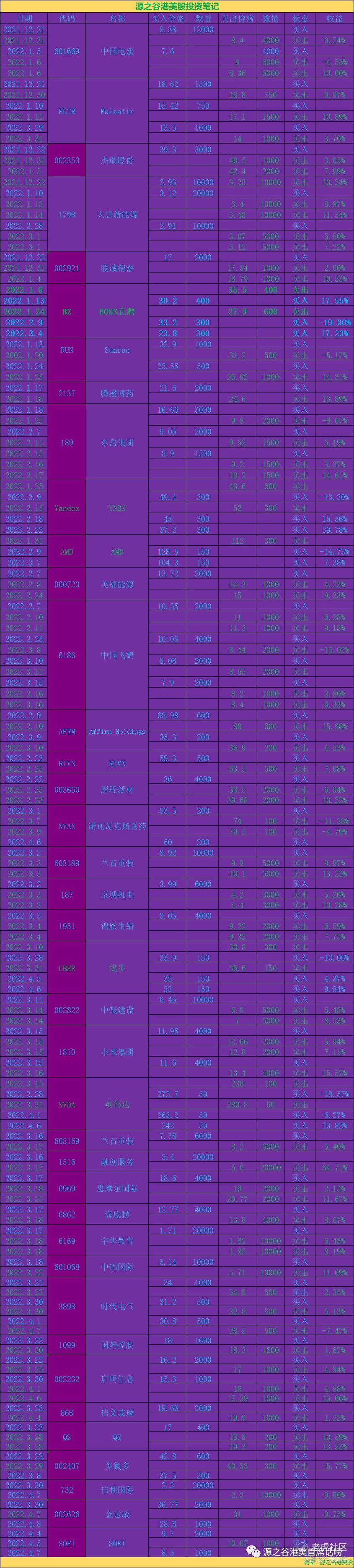 自2021年12月20日起,源之谷港美股启动【源之谷港美股投资笔记】,以操作组为单位进行长期跟踪点评,并详细将买入卖出持有的逻辑做成系列展示出来,记录投资的点滴,进化投资的思维,也为更多的小伙伴提供小小的投资思路和经验,让投资不再难,让小散也会有春天!