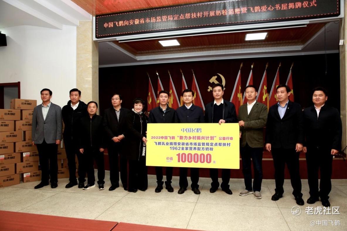 11月22日,中国飞鹤奶粉捐赠暨爱心书屋揭牌仪式在安徽省潜山市官庄村举行。安徽省市场监管局党组成员、副局长刘存俊,安徽省市场监管局机关党委专职副书记、机关纪委书记、一级调研员陈爱珠,安徽省市场监管局特殊食品监管处处长陶勇,潜山市政府党组成员、副市长焦东风以及中国飞鹤中区总经理王健等领导出席活动,与官庄村民、志愿者共同见证奶粉捐赠仪式以及爱心书屋的正式落成。
