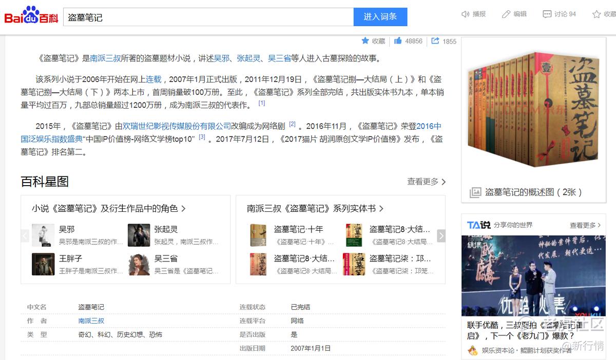 天涯的故事也不少。比如盗墓类名作《鬼吹灯》,最初就是在天涯的“莲蓬鬼话”连载。而《盗墓笔记》的作者南派三叔就曾经是《鬼吹灯》的狂热书迷,他觉得更新实在太慢了,就自己写,《盗墓笔记》就是这样来的。