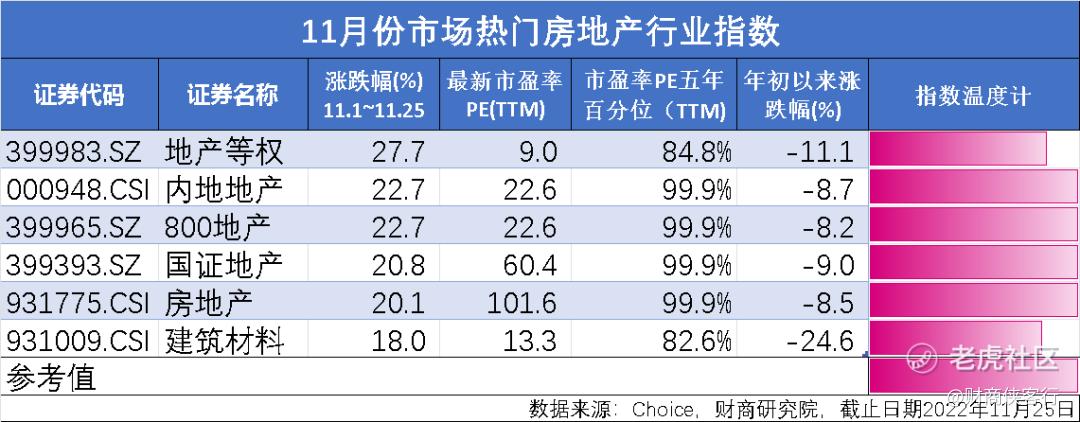 压抑已久的房地产板块彻底爆发,11月份以来,申万房地产指数在19个交易日内,大幅上涨20.9%。