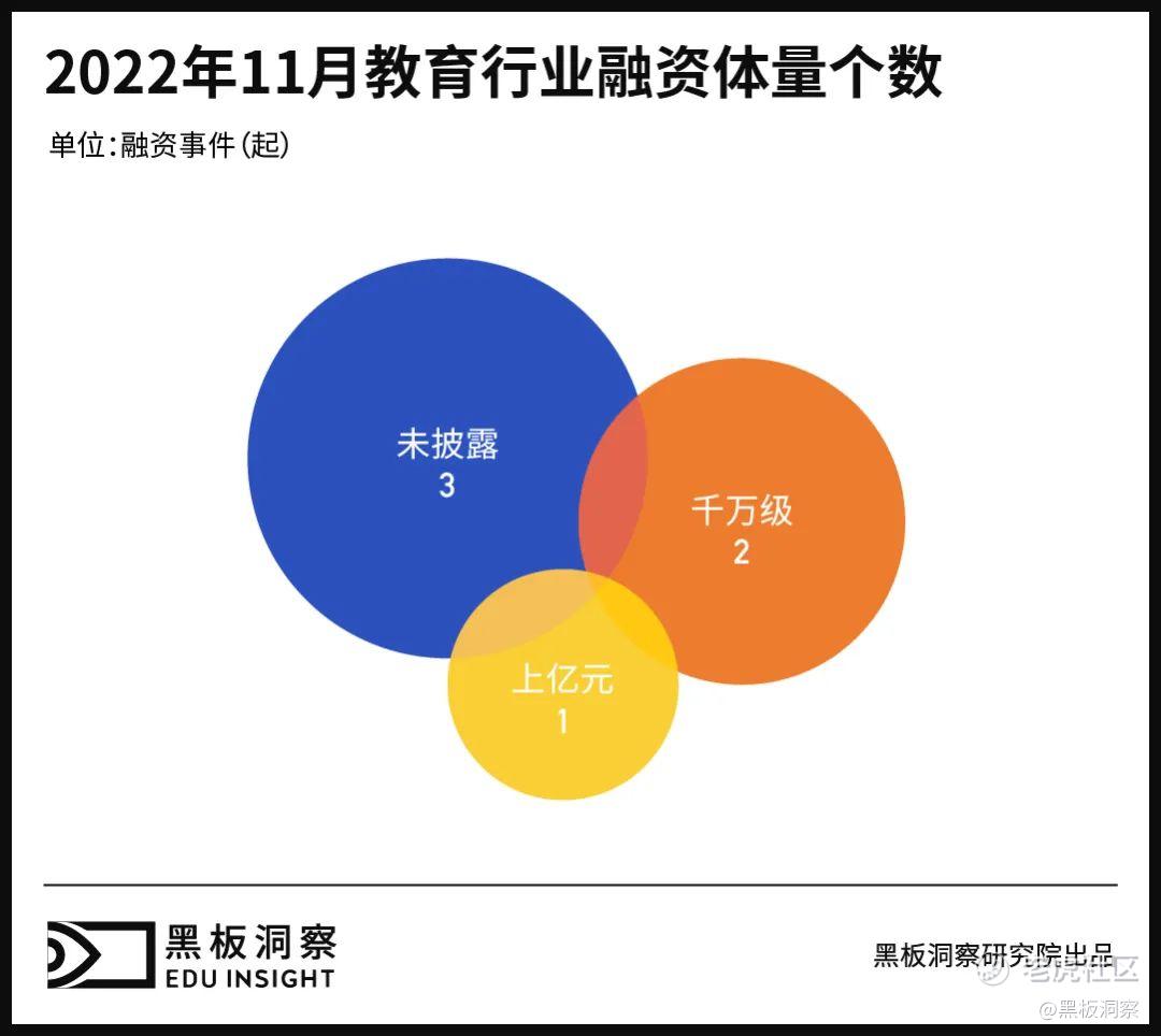 不知不觉,教育行业行将迈入 2022 年最后一个月份。纵观这 11 个月来的表现,行业单月融资已鲜有超过 10 亿元的成绩,基本维持在 5 亿左右的水平。大起大落之后,行业整体也日趋归于平稳。最后,希望其能在 12 月顺利收官,为 2022 年画上一个不错的句号。