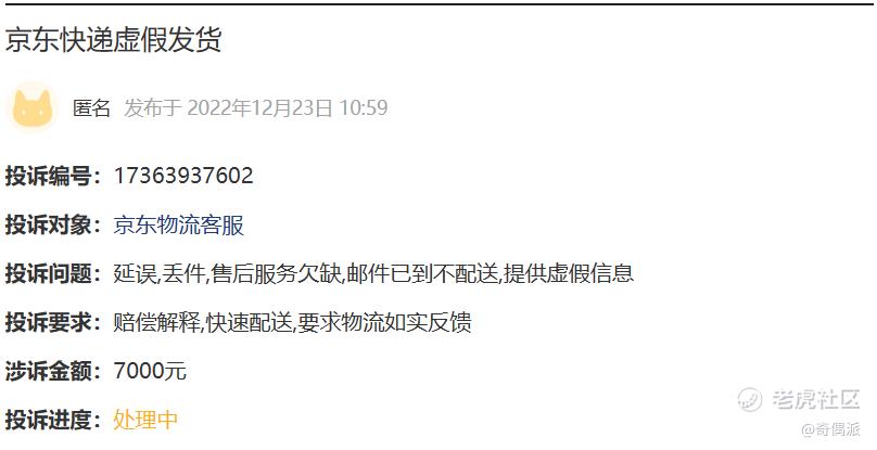 而在黑猫投诉上也有不少消费者提出了对京东购物时物流问题的类似投诉。有称商家伪造物流单号,欺骗消费者,而在与客服的交涉中,还出现了商家客服与京东客服互相推脱、无法解决问题的情况,甚至有的消费者称存在包裹“闪现”、“时间回溯”的情况。