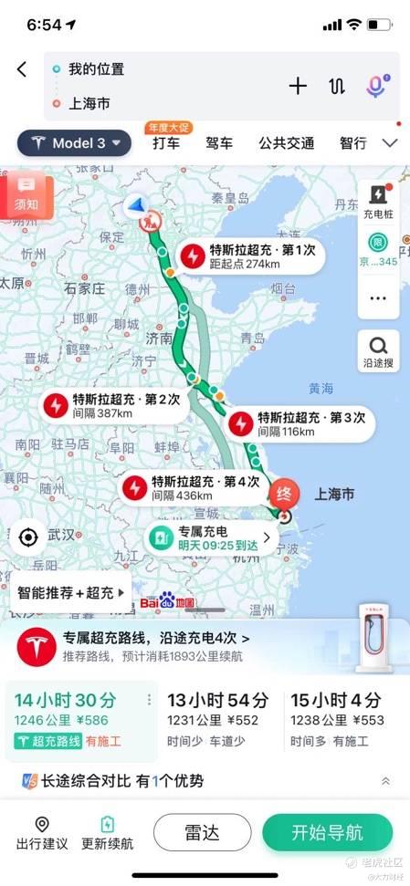 百度地图为特斯拉车主创新打造了专属超充路线。通过在百度地图设置【超充优先】偏好,即可通过百度地图找到一条全程都是特斯拉超级充电站的专属路线。百度地图还会根据温度、道路坡度、路况等因素进行综合评估,让车主避免出现中途的电力不足,每次出行都享受VIP待遇。