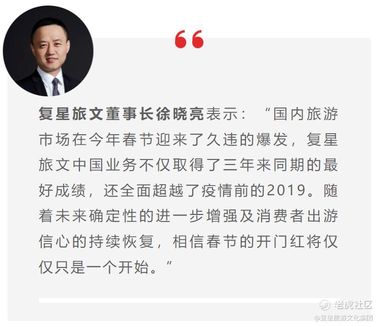随着全国新冠疫情形势的全面好转,2023年春节假期复星旅文中国区业务喜迎兔年开门红,Club Med地中海俱乐部、三亚·亚特兰蒂斯等度假村及旅游目的地连日火爆,核心数据全面超越疫情前的2019。