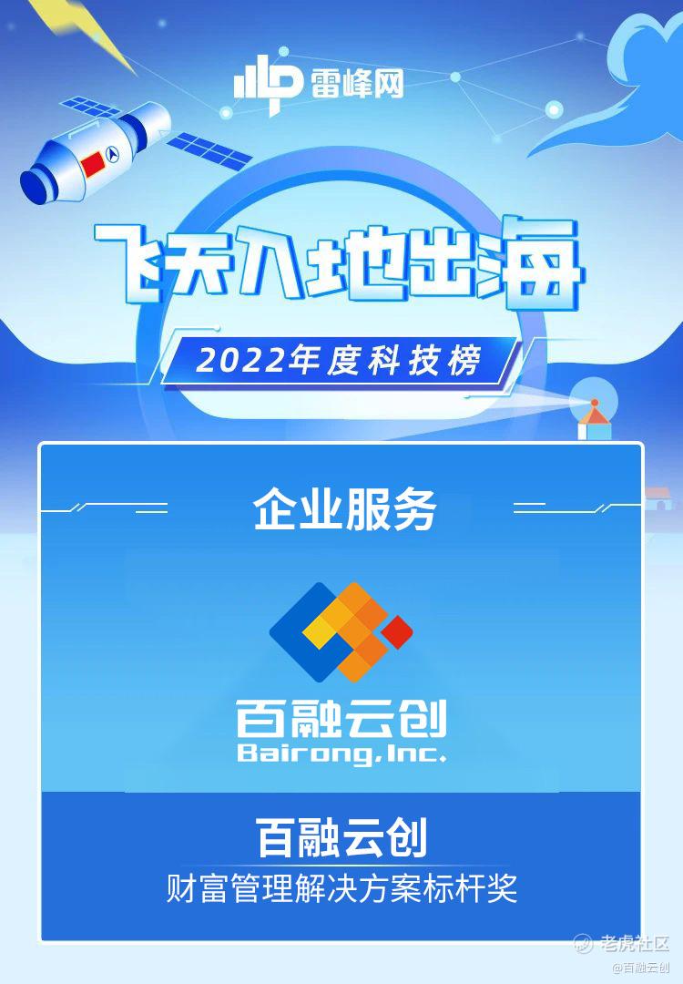 日前,作为科技行业最顶尖的产业媒体之一,雷峰网公布了2022「飞天入地出海」年度科技榜评选结果。百融云创凭借在推动人工智能等技术在财富管理领域的创新应用,荣获“财富管理解决方案标杆奖”,与同时上榜的腾讯、百度、阿里等知名企业共同组成新商业秩序的先行者和布道者。