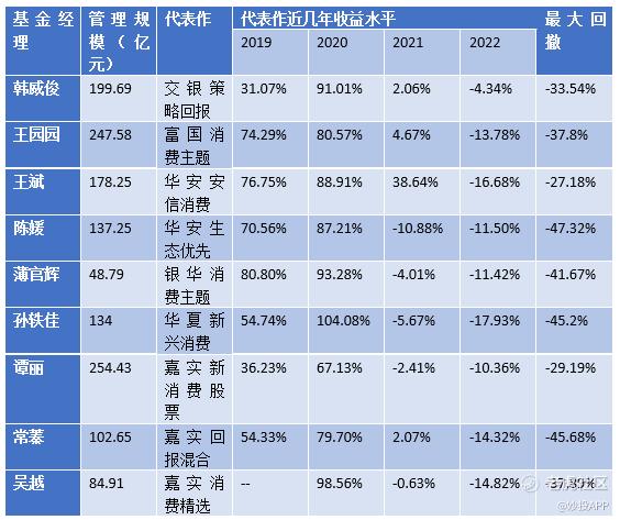 顶流消费基金经理规模与业绩表现
