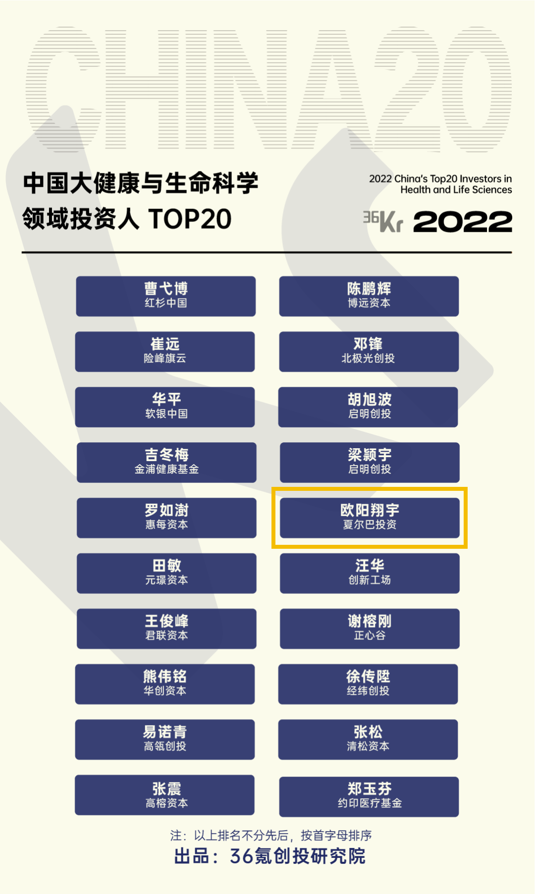 中国大健康与生命科学领域投资人TOP20——欧阳翔宇