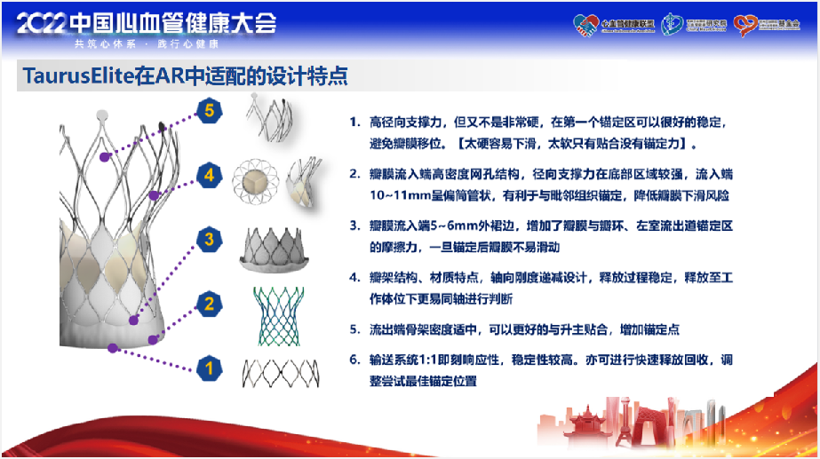 王斌教授提到,必要时可行烟囱支架技术或Basilica进行冠脉阻塞的干预,重在预防;TaurusElite可回收系统可在展开过程中根据天然瓣膜和假体瓣膜的相互左右及密封情况进行定位调整,成为了术中有效的调整策略;平衡的收腰设计规避冠脉阻挡风险,为TAVR手术的成功保驾护航。
