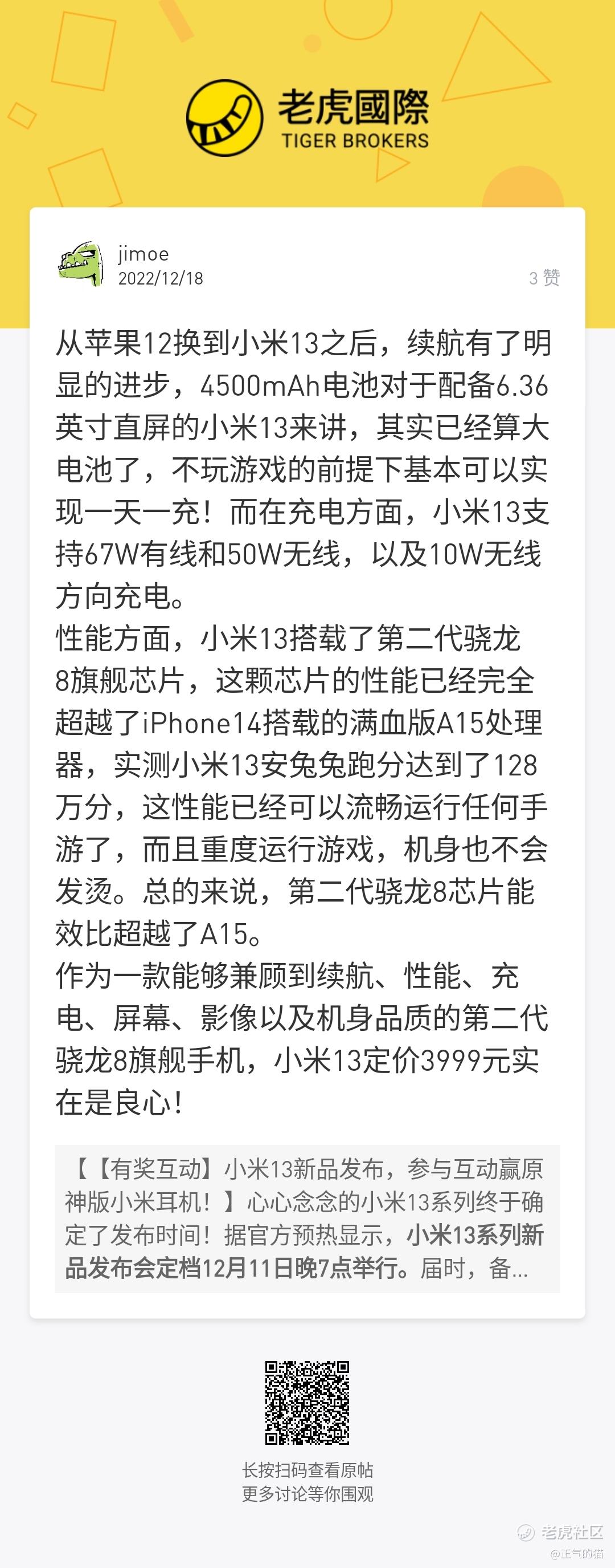 {"i18n":{"language":"zh_CN"},"detailType":1,"isChannel":false,"data":{"magic":2,"id":623620356,"tweetId":"623620356","gmtCreate":1671345667876,"gmtModify":1671348972209,"author":{"id":3578817648770505,"idStr":"3578817648770505","authorId":3578817648770505,"authorIdStr":"3578817648770505","name":"正气的猫","avatar":"https://static.tigerbbs.com/7dfb36b6e046b3d04990494cf05ad134","vip":1,"userType":1,"introduction":"","boolIsFan":false,"boolIsHead":false,"crmLevel":2,"crmLevelSwitch":0,"individualDisplayBadges":[],"fanSize":47,"starInvestorFlag":false},"themes":[],"images":[{"img":"https://static.tigerbbs.com/130bbbb701fd1c825b23bb4a323dad6d","width":"1080","height":"2750"}],"coverImages":[{"img":"https://static.tigerbbs.com/130bbbb701fd1c825b23bb4a323dad6d","width":"1080","height":"2750"}],"html":"<html><head></head><body><p>不错丫</p> <img src=\"https://static.tigerbbs.com/130bbbb701fd1c825b23bb4a323dad6d\" tg-width=\"1080\" tg-height=\"2750\"></body></html>","htmlText":"<html><head></head><body><p>不错丫</p> <img src=\"https://static.tigerbbs.com/130bbbb701fd1c825b23bb4a323dad6d\" tg-width=\"1080\" tg-height=\"2750\"></body></html>","text":"不错丫","highlighted":1,"essential":1,"paper":1,"likeSize":0,"commentSize":0,"repostSize":0,"favoriteSize":0,"link":"https://laohu8.com/post/623620356","repostId":0,"isVote":1,"tweetType":1,"viewCount":815,"commentLimit":10,"likeStatus":false,"favoriteStatus":false,"reportStatus":false,"symbols":[],"verified":2,"subType":0,"readableState":1,"langContent":"CN","currentLanguage":"CN","warmUpFlag":false,"orderFlag":false,"shareable":true,"causeOfNotShareable":"","featuresForAnalytics":[],"commentAndTweetFlag":false,"andRepostAutoSelectedFlag":false,"upFlag":false,"length":6,"xxTargetLangEnum":"ZH_CN"},"commentList":[],"isCommentEnd":true,"isTiger":false,"isWeiXinMini":false,"url":"/m/post/623620356"}