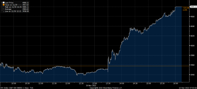 11月30日鲍威尔讲话没鹰没鸽后的市场走势。