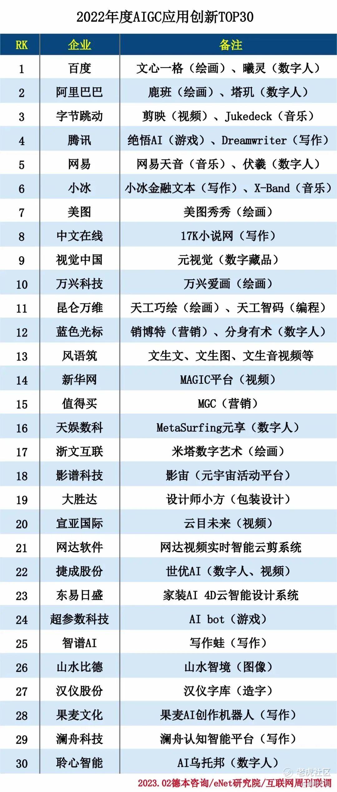 近年,AIGC不仅在深度学习模型上取得巨大进步,更在落地场景这方面遍地开花,入选“2022年度AIGC应用创新TOP30”的企业,在AIGC的技术创新和场景探索上表现都较为突出,涵盖应用场景包括AI绘画、数字人、写作等多个领域。