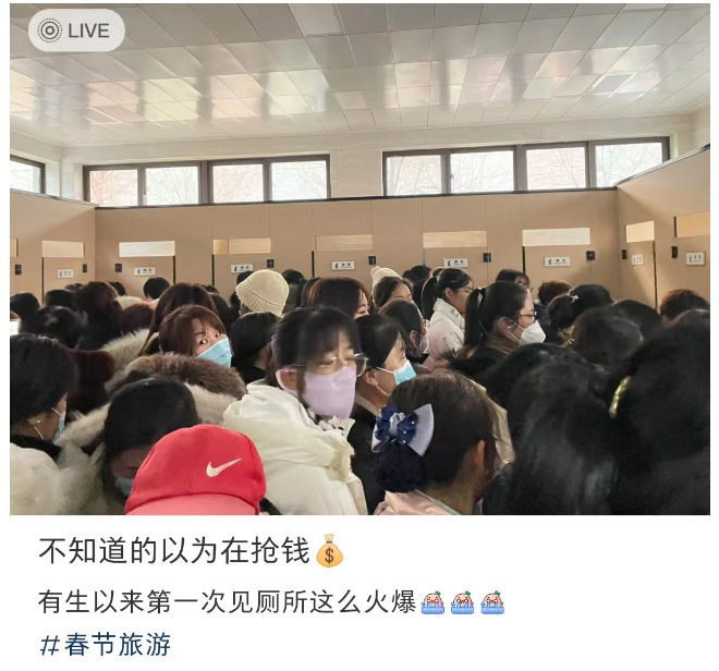 在厕所方便的游客,站在原地就能和外面排队的人**流使用心得,实时共享如厕体验。