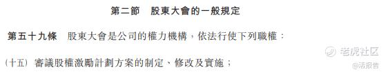 实操中,不少H股在公司章程中规定了股东大会审议股权激励方案的职权。