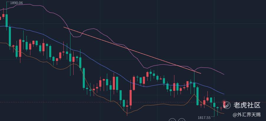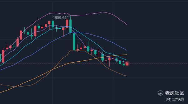 日线图的话,布林带整体也是朝下,六十日均线在一个 1876的位置,在金价的下方位置,十日五日均线均在金价的上方,五日十日均线都在金价的位置,六十日均线处于一个金价上方的位置,下方MACD快慢线均开口朝下,重点关注日均线的阻力位置。