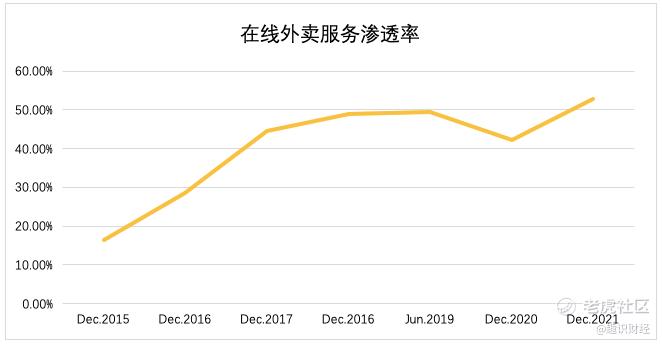 从行业层面来说,根据CNNIC调研报告,截止到2021年12月末,我国外卖渗透率为52.4%,尚有47%的用户尚待挖掘;即便比之网络支付(87.4%)和网络购物(81.6%),提升空间也很可观。