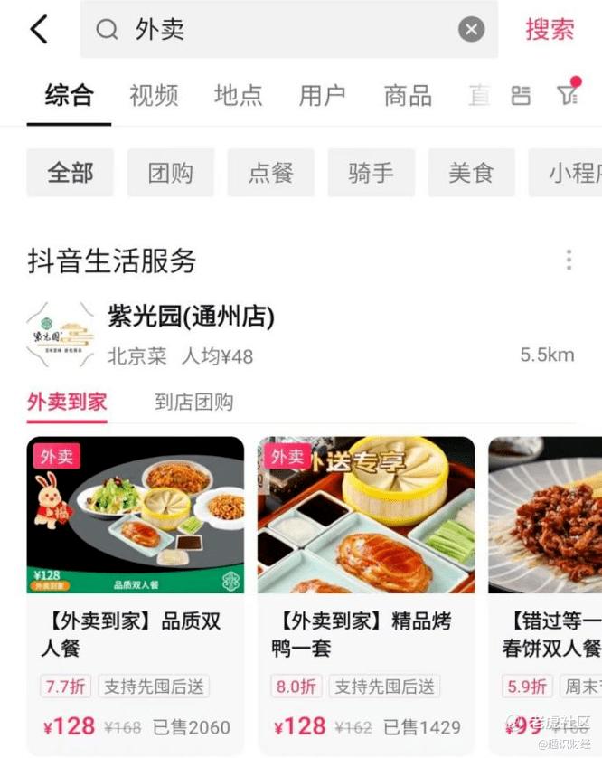 虽然抖音负责人否认了这一说法,称“‘团购配送’项目目前仅在北京、上海、成都试点中,后续将视情况,考虑逐步拓展到其他城市”,但在抖音APP中,搜索“外卖”两字,已有不少餐饮商家提供外卖到家服务。
