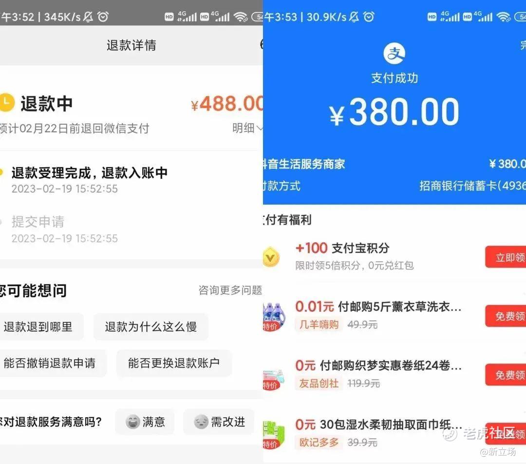 (用户在美团与抖音的退款和支付)