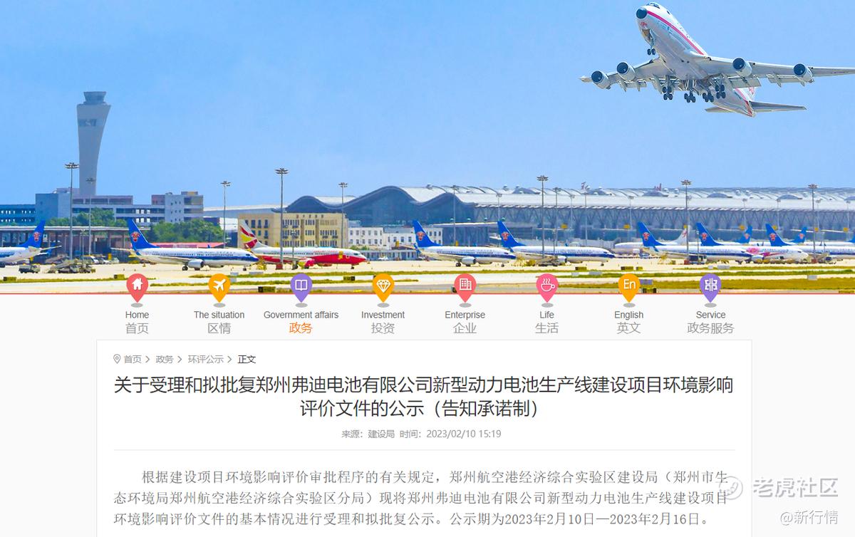 值得一提的是,2月12日,郑州航空港经济综合实验区网站发布《关于受理和拟批复郑州弗迪电池有限公司新型动力电池生产线建设项目环境影响评价文件的公示》。