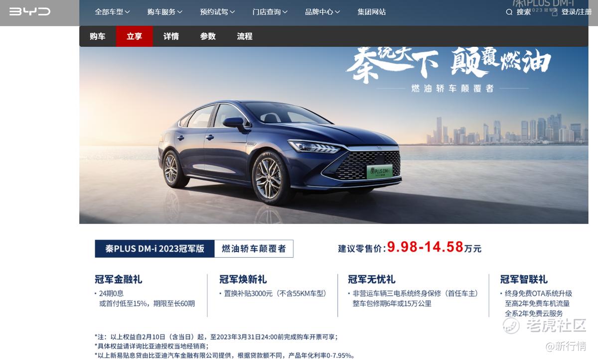 2月10日,比亚迪正式发布2023新款电动汽车秦PLUS DM-i 2023冠军版,官方指导价为9.98万元-14.58万元,这也是DM-i车型售价首次降至10万以内。
