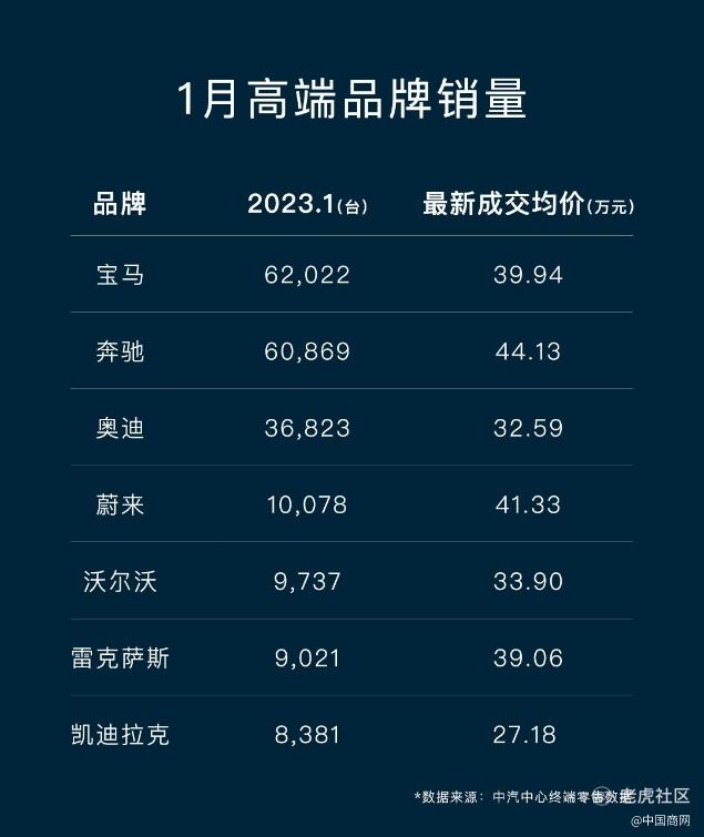 比如,一直跟BBA、雷克萨斯等豪华品牌“纠缠不休”的蔚来交出了一份答卷。蔚来1月整体销量10,078台,超过雷克萨斯的9,021台。