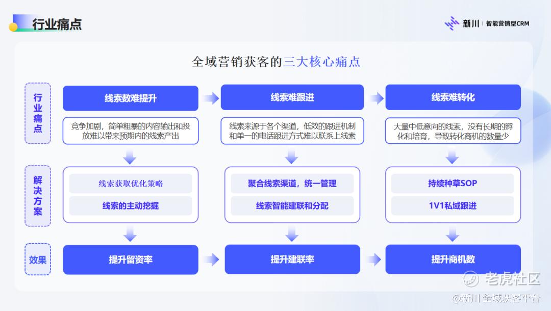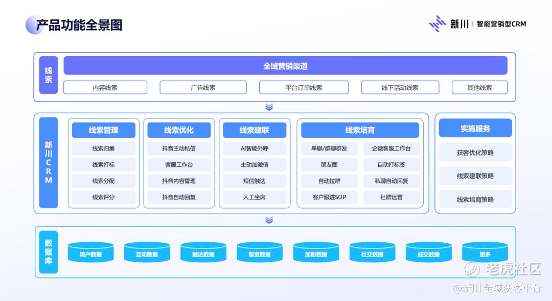 另一方面,新川提供了一站式线索管理系统,帮助大家识别和管理粉丝,聚合公域线索渠道,智能建联和分配,然后进行统一管理。真正做到“推广人群可筛选”、“目标人群可触达”、提升线索建联率。