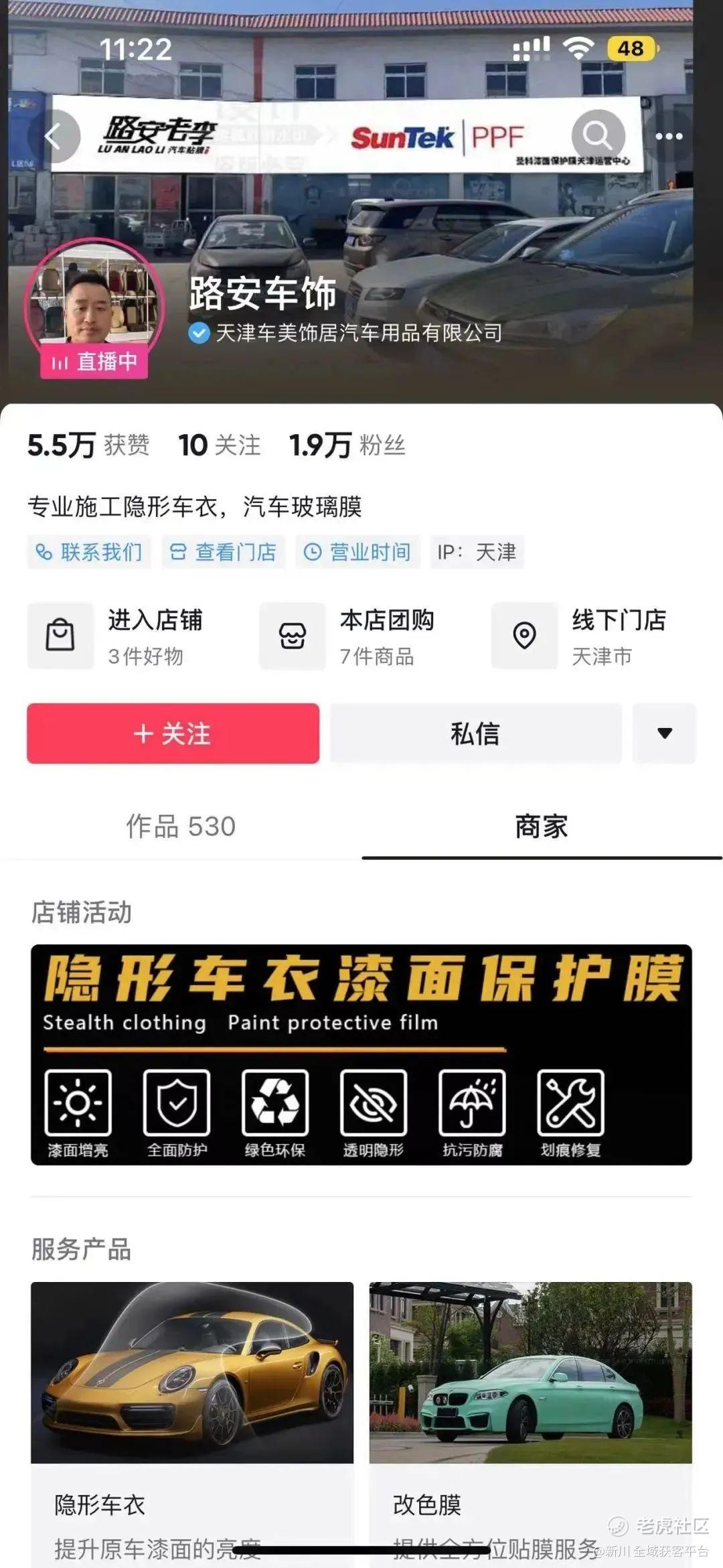 例如,天津车美饰居汽车用品有限公司就是通过抖音企业号+工具不断进行经营,已经从抖音小白成长为本地行业内小有名气的商家。