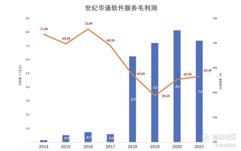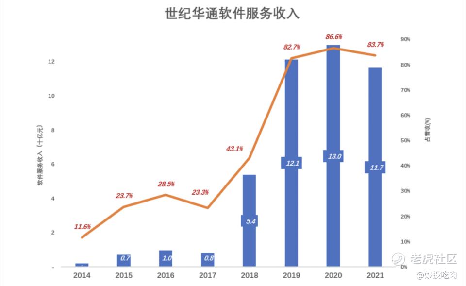 2021年软件服务收入降至116.6亿、占营收的83.7%。