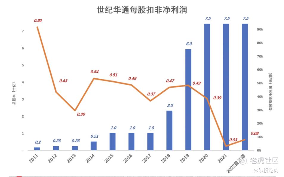 并购盛跃网络后,股本从23亿增至60亿。2019年扣非净利润20.1亿、平均到每股0.49元,低于2015年的水平。