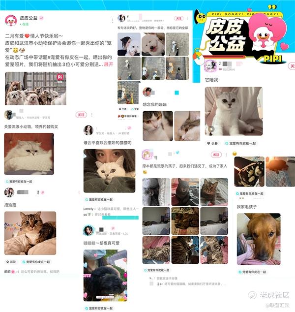活动当天,站内网友纷纷在社区话题站中分享了自己和爱宠的亲密合照。同时,皮皮App也在身体力行,号召网友关爱流浪动物,领养代替购买,将目光聚焦在流浪动物身上,建立起了一个有责任心、耐心、爱心,与爱宠相伴的理念。