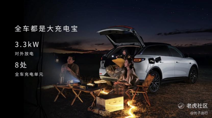 对于长途旅行的用户来讲,零跑C11增程版还是一块大充电宝,整车有超过8处充电单元,分别为手机无线充电的接口、前排12伏的充电接口、两个 USB 接口、后排的type c的接口以及对外放电的220伏3. 3千瓦对外放电枪。零跑C11增程版43度电的电池包再配上47升油箱能发动的140度电左右,足够满足用户外接投影、电脑甚至电火锅等多场景用电需求。