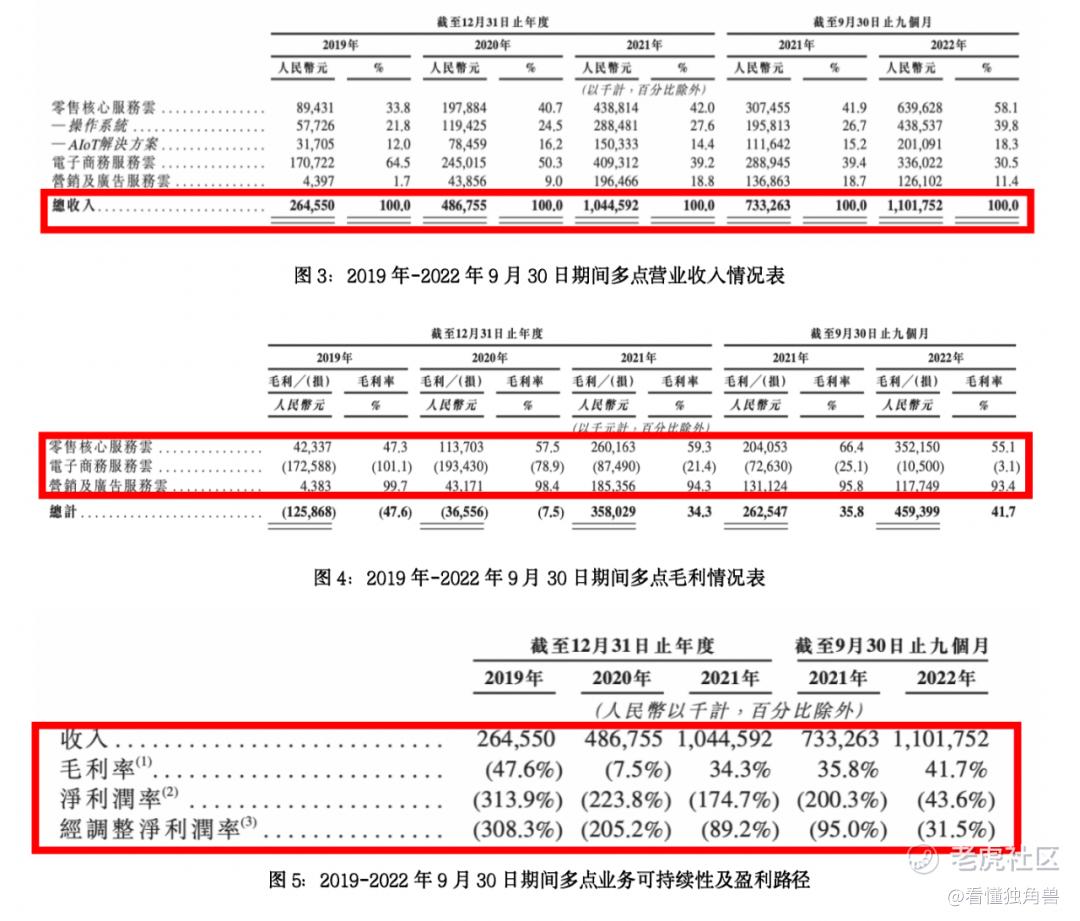 根据招股书来看,多点的总收入分别为2019年的2.65亿元,增加84.0%至2020年的4.87亿元,进一步增加114.6%至2021年的10.45亿元,2022年前9个月,多点的营收从上年同期的7.33亿元进一步上涨至11.02亿元,同比增长50.3%,已经赶超去年全年的营收水平。