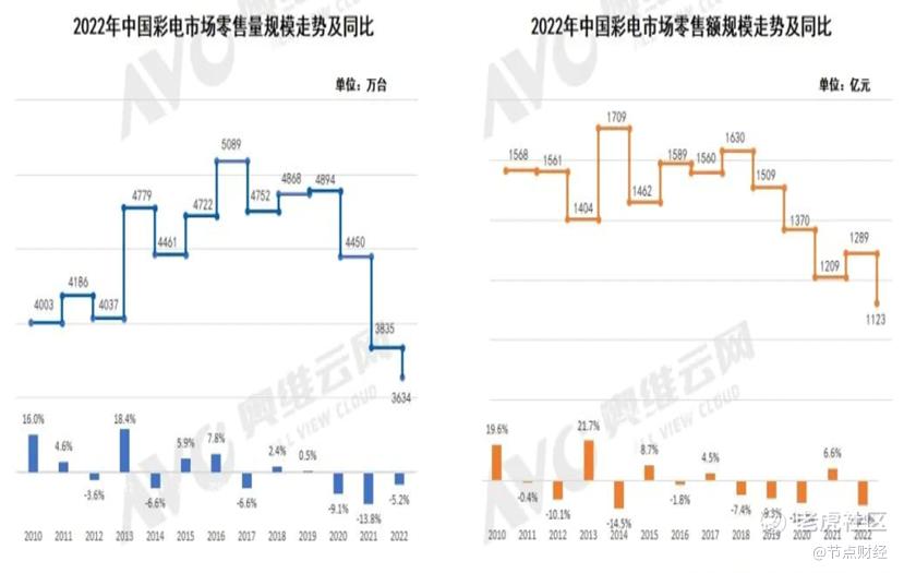 从历史趋势看,2022年中国彩电行业规模,无论是销量还是销售额,均创下历史新低。