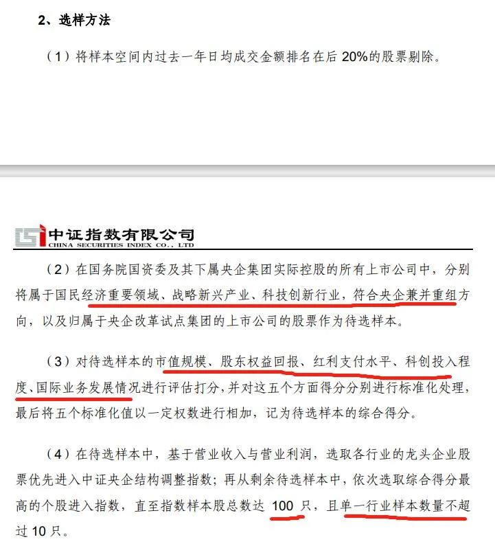 注意,这个指数把金融股和非金融股都列了入选条件,而且规模排名和创新排名是8比2,这样更增加了大市值央企的入选概率。