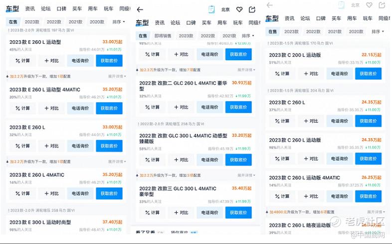 就连一向高傲的“BBA”都没能独善其身,逃脱这场席卷国内的价格战争,陆续传来“降价捷报”:在北京,奔驰C、奔驰E降价6万左右,奔驰GLC、GLB优惠在5万元到7万元不等......这样大力的降价幅度,足以证明这场价格战的程度之激烈。