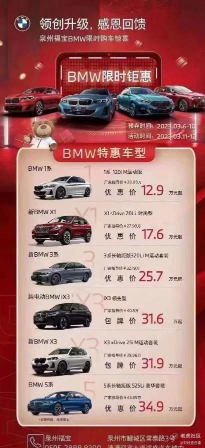 最令我震惊的是,豪车三巨头BBA也罕见下场:宝马X3优惠6万,3系全线优惠5万起......当BBA也绷不住开始降价的时候,我似乎更加坚定了自己“电车衷粉”的选择,并觉得,此次集体降价潮,更像是燃油车们的饮鸠止渴。