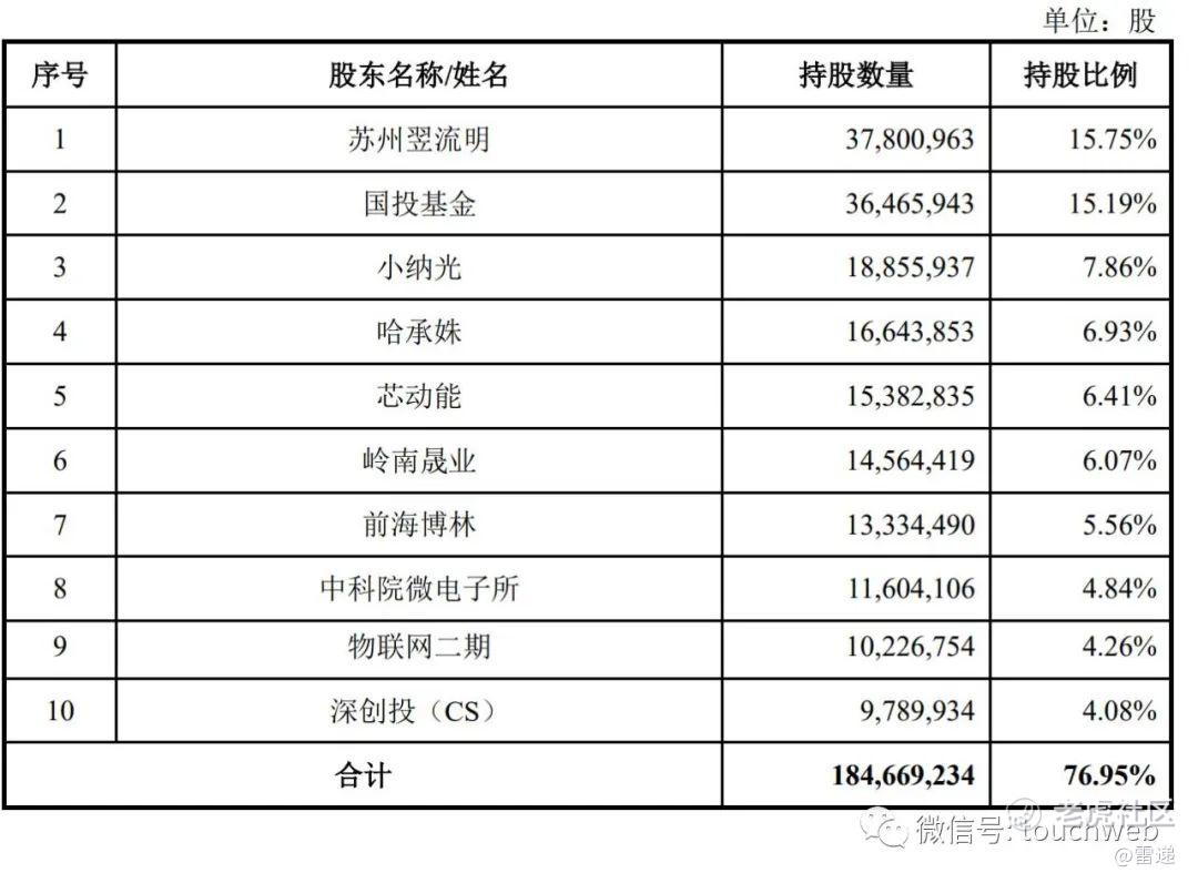 物联网二期持股为4.26%,深创投(CS)持股为4.08%,创新一号持股为3.84%,聚源载兴持股为2.97%,聚源启泰持股为1%。