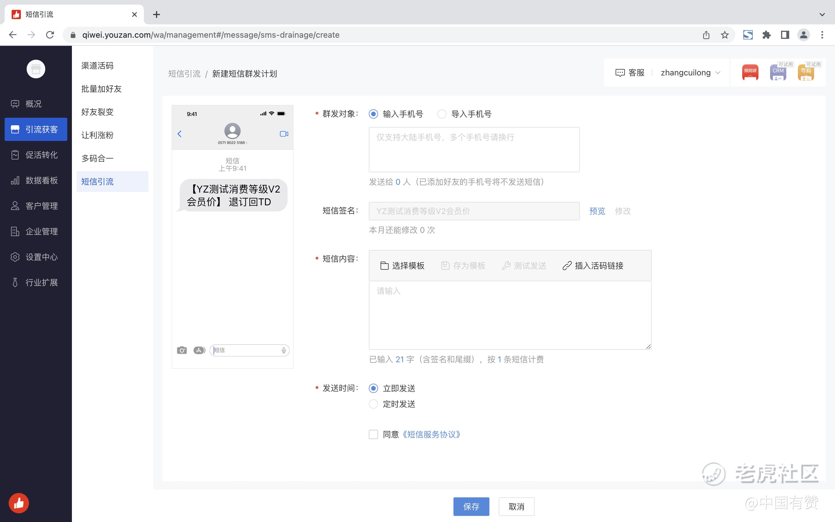 目前,短信引流功能已经向有赞商家全量开放,订购了有赞企业微信助手的商家可以直接使用。