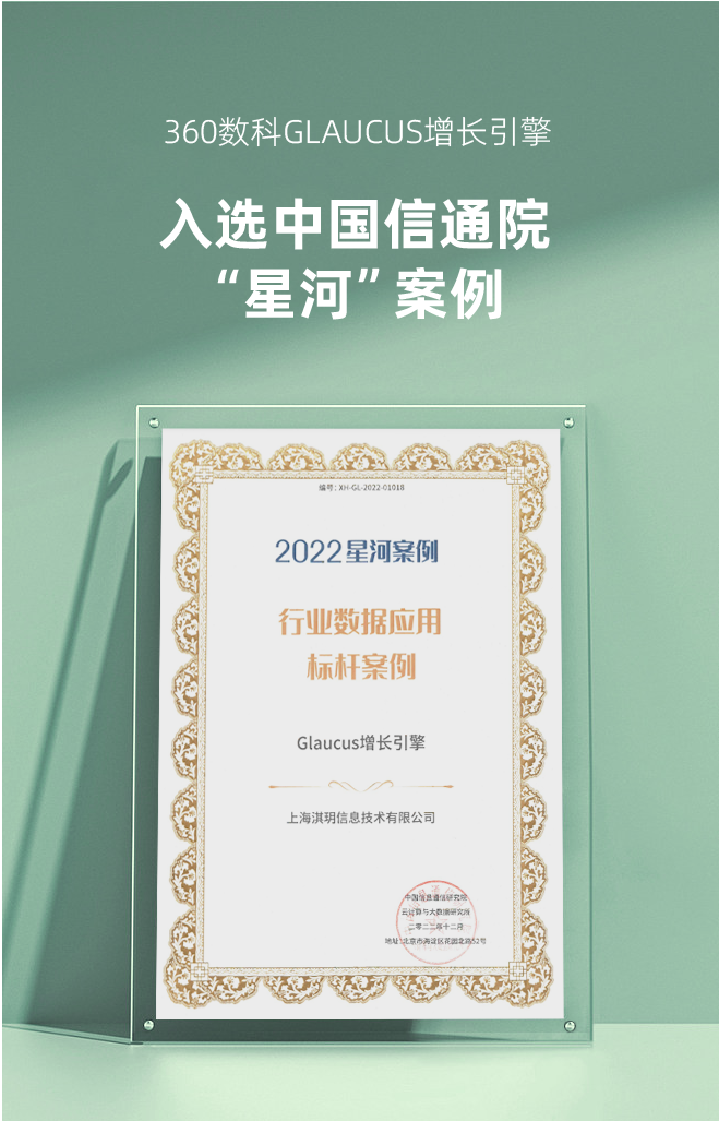 会上,主办方公布了第六届大数据“星河(Glaxy)”案例,360数科Glaucus增长引擎获评为“行业数据应用标杆案例”,成为唯一入选的金融科技案例。