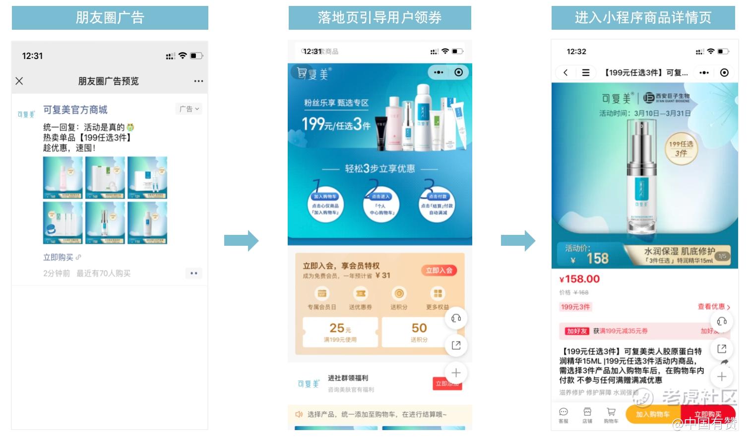 在执行层面,有赞广告和可复美此次合作分为了有计划有目的的四步骤,它们彼此之间协同配合,共同推动营销效果最大化。