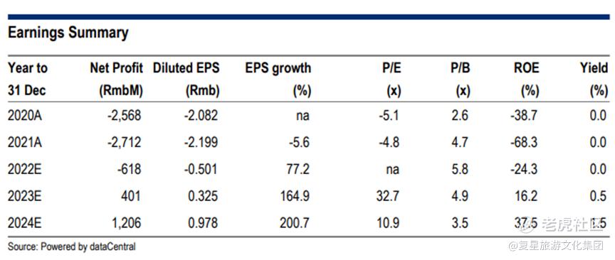 新项目:1)丽江复游城元旦期间营业额同比增长27%。管理层预计2023年的销售额将有10%的高速增长。在正常的一年里,它将产生2亿至3亿元人民币的收益,EBITDA利润率为30%至35%。房地产方面,目前400套公寓中,售出80%后才会进入下一阶段。2)太仓一期(包括华东地区最大的滑雪设施,拥有300间客房的Club Med Joyview酒店和商业街)将于2012年第四季度开始运营。公司在22财年确认了约12亿至13亿元人民币的房地产销售收入,并计划在2023年有所改善。