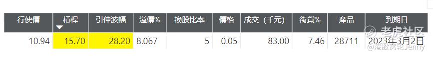 认购证成交活跃区域处于价外约1.74%。活跃区间一共有13只产品,杠杆在7.0倍至15.7倍,28711及28546实际杠杆相对较高,分别有15.7倍及14.7倍。