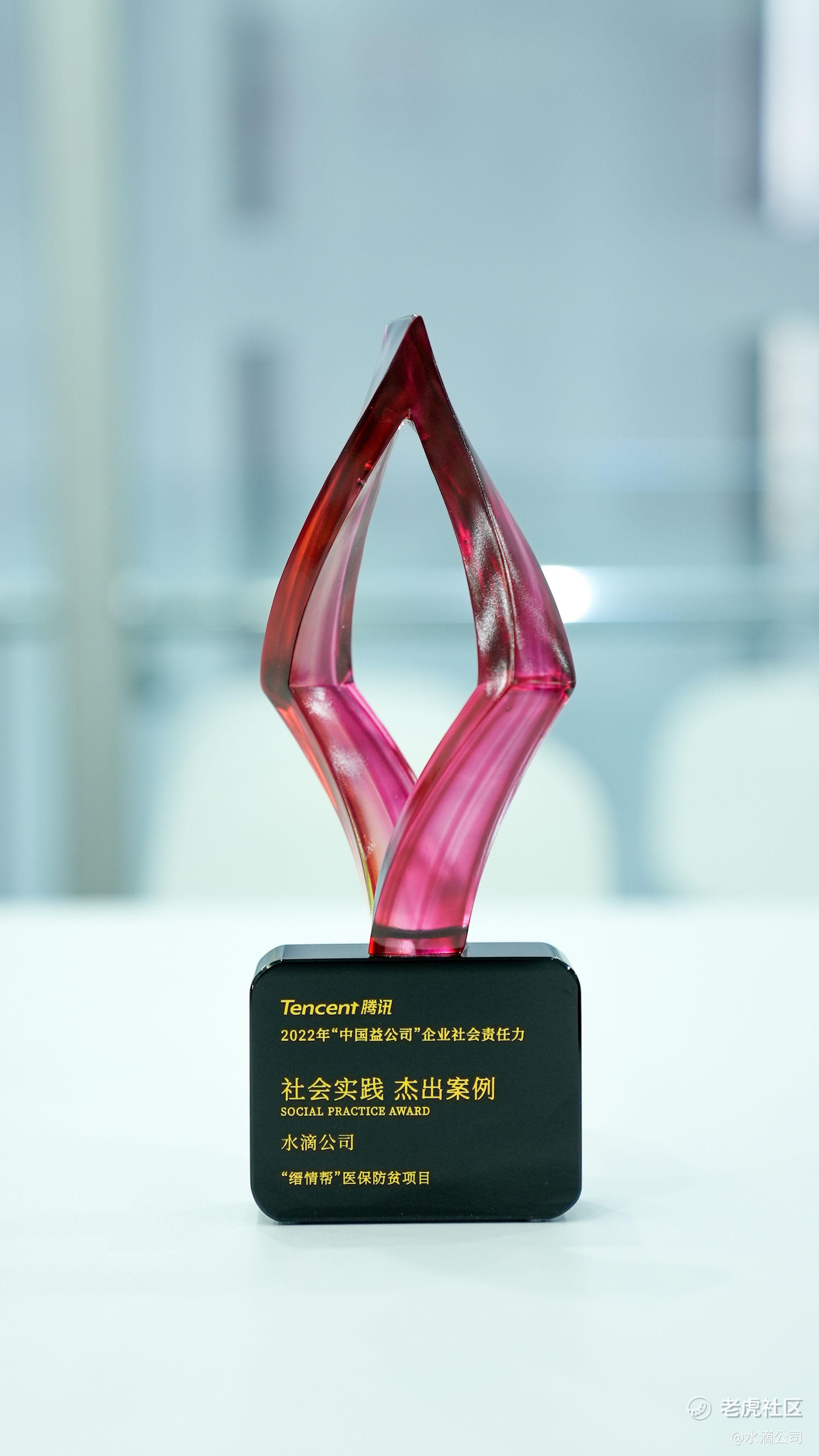 2023年1月11日,腾讯新闻“中国益公司”责任力年度论坛在北京举行,论坛揭晓了2022“中国益公司”企业评选最终结果,$水滴(WDH)$ “缙情帮”医保防贫项目荣获社会实践杰出案例奖。