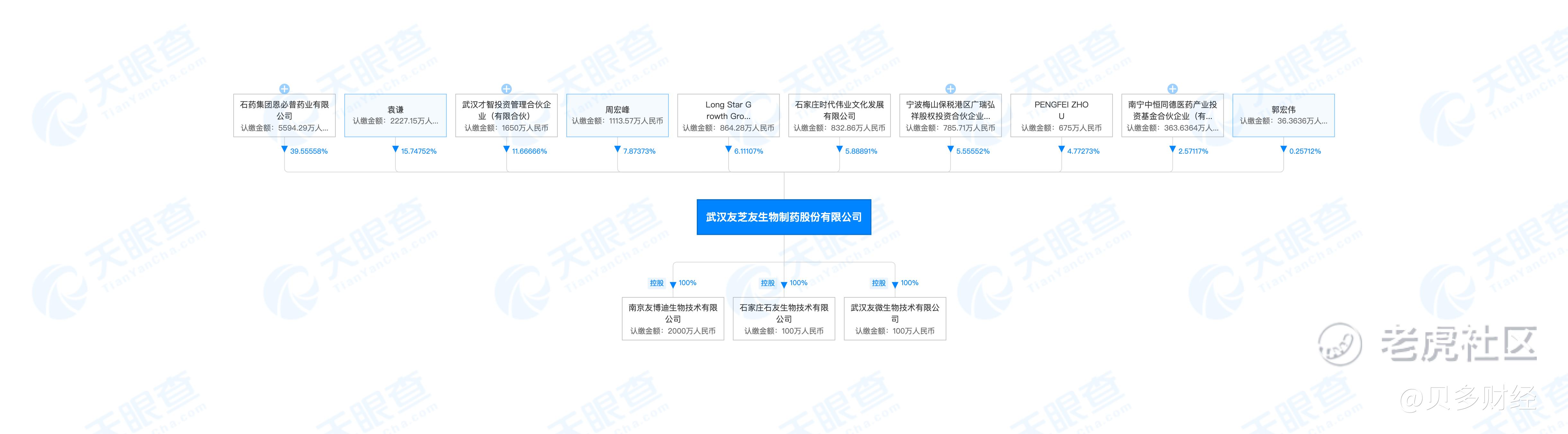 据天眼查信息显示,友芝友生物成立于2010年7月,系石药集团(HK:01093)成员,位于湖北省武汉市。当前,该公司的注册资本约为1.82亿元,法定代表人为PENGFEI ZHOU(周鹏飞),股东包括石药集团等。