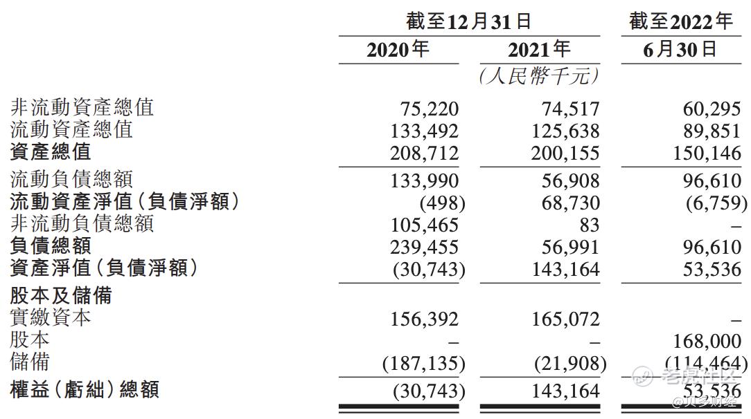 2020年、2021年和2021年上半年末,友芝友生物的资产总值分别为2.09亿元、2.00亿元和1.50亿元,资产净值(负债净额)分别为-3074.3万元、1.43亿元和9661.0万元,权益总额分别为-3074.3万元、1.43亿元和9661.0万元。