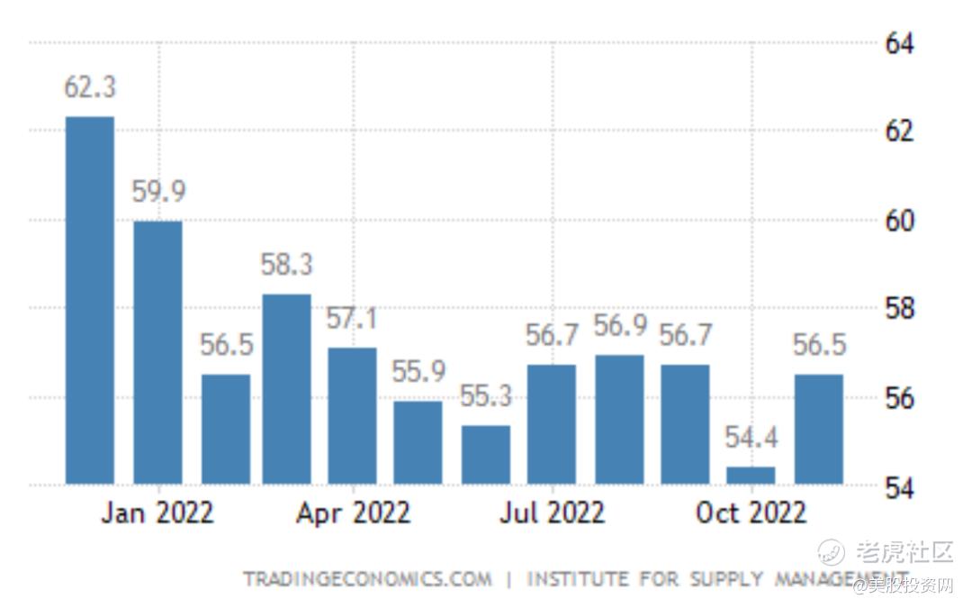 报告显示美国11月ISM非制造业指数意外上升至56.5,高于市场预计的53.7。分项指数中,商业活动指数创2021年3月份以来的最大增幅。而且,ISM分项指数中的物价支付指数11月小幅下降,仍远超疫情前水平,暗示通胀回落缓慢。$百事可乐(PEP)$ $亚马逊(AMZN)$