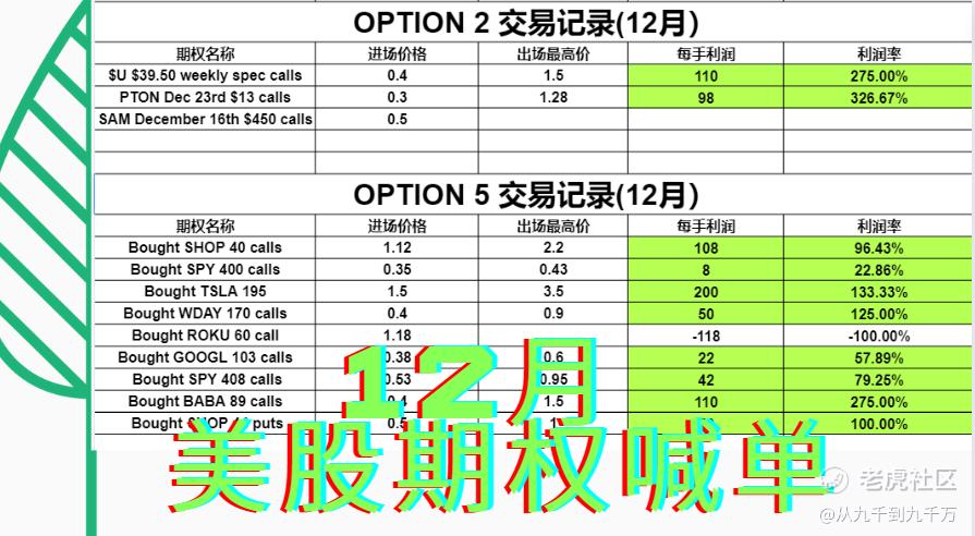 上周期权收益战报