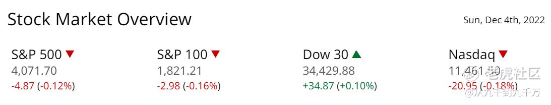 Hello大家好,这里是九千君。标普500指数周五下跌-0.12%,道琼斯工业指数上涨+0.10%,纳斯达克100指数下跌-0.40%。