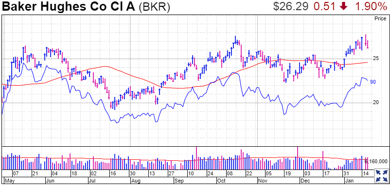 油田服务巨头贝克休斯(Baker Hughes)和斯伦贝谢(Schlumberger)本周将公布第四季度业绩,这两家公司有望扭亏为盈。BKR的股票刚刚低于买入点,而SLB的股票处于买入区。