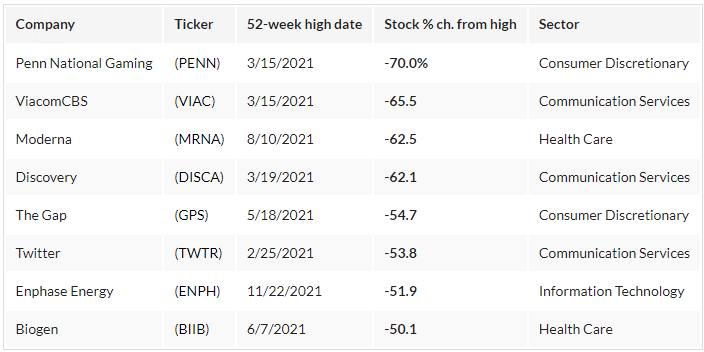 这意味着投资者已经从2021年8月10日标准普尔500指数的52周高点下跌了62%以上。